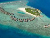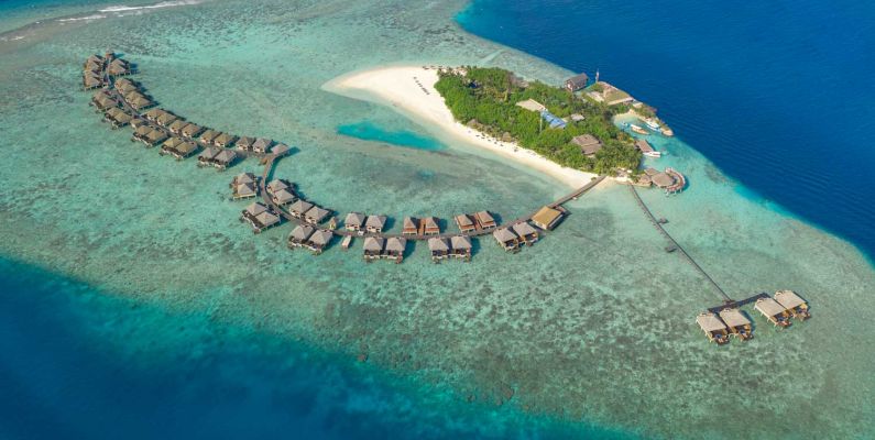 Travellers can relax in the lavish comfort of the resort’s water villas and enjoy the exotic reef teeming with vibrant aquatic flora and fauna, making it a popular spot for snorkelling.
