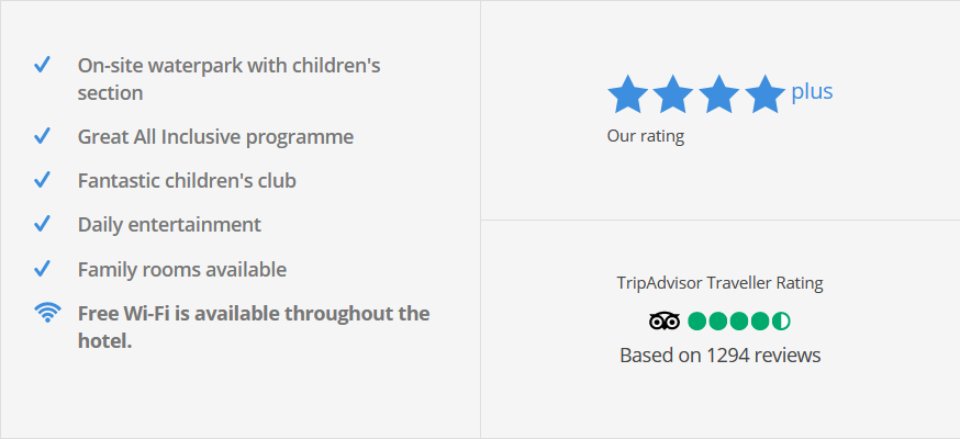 Whizz down colourful waterslides and dodge the tipping water buckets at Jupiter Albufeira Hotel’s on-site splash park! When you stay at this Family Luxe property, you’ll soon see it’s made for days in the rays. Four outdoor pools, super-plush rooms and All Inclusive board as standard are all part of its best bits. A trio of restaurants, five bars, kids’ club, playground and great All Inclusive package also add to the perks. Fancy getting out and about in the Algarve? Spread your wings and hit the beach, local shops and eateries and even Albufeira Old Town. There’s plenty to enjoy!