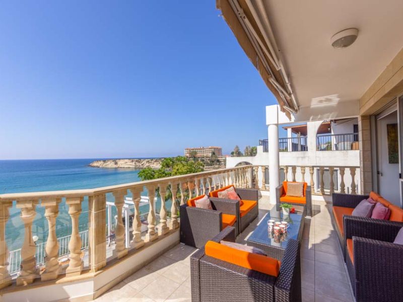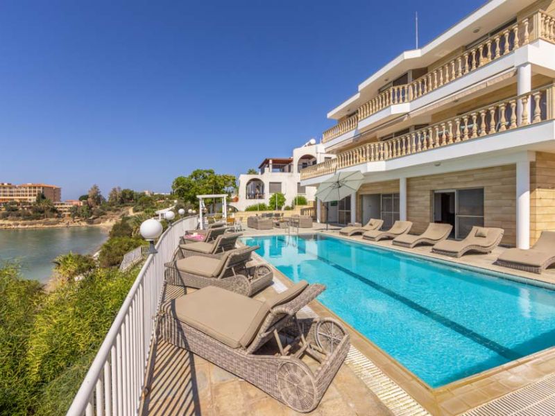 You can’t get more beachfront than this, perched on the hillside with your own private direct access to a pristine stretch of coast. Just a two-minute walk away are the golden sands of the horse-shoe shaped Coral Bay and its calm turquoise waters. Try snorkelling its vibrant reefs, have a go at some adventure-packed water sports or simply unwind on the soft sand under the warm Cypriot sun.